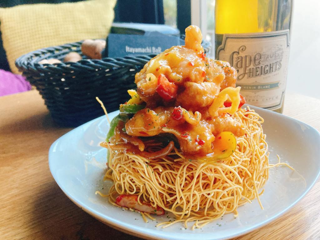 卵多めの衣であげてスイートチリソースとマヨで手早く絡めて出来上がり。熱々がうまい、野菜との相性も抜群。